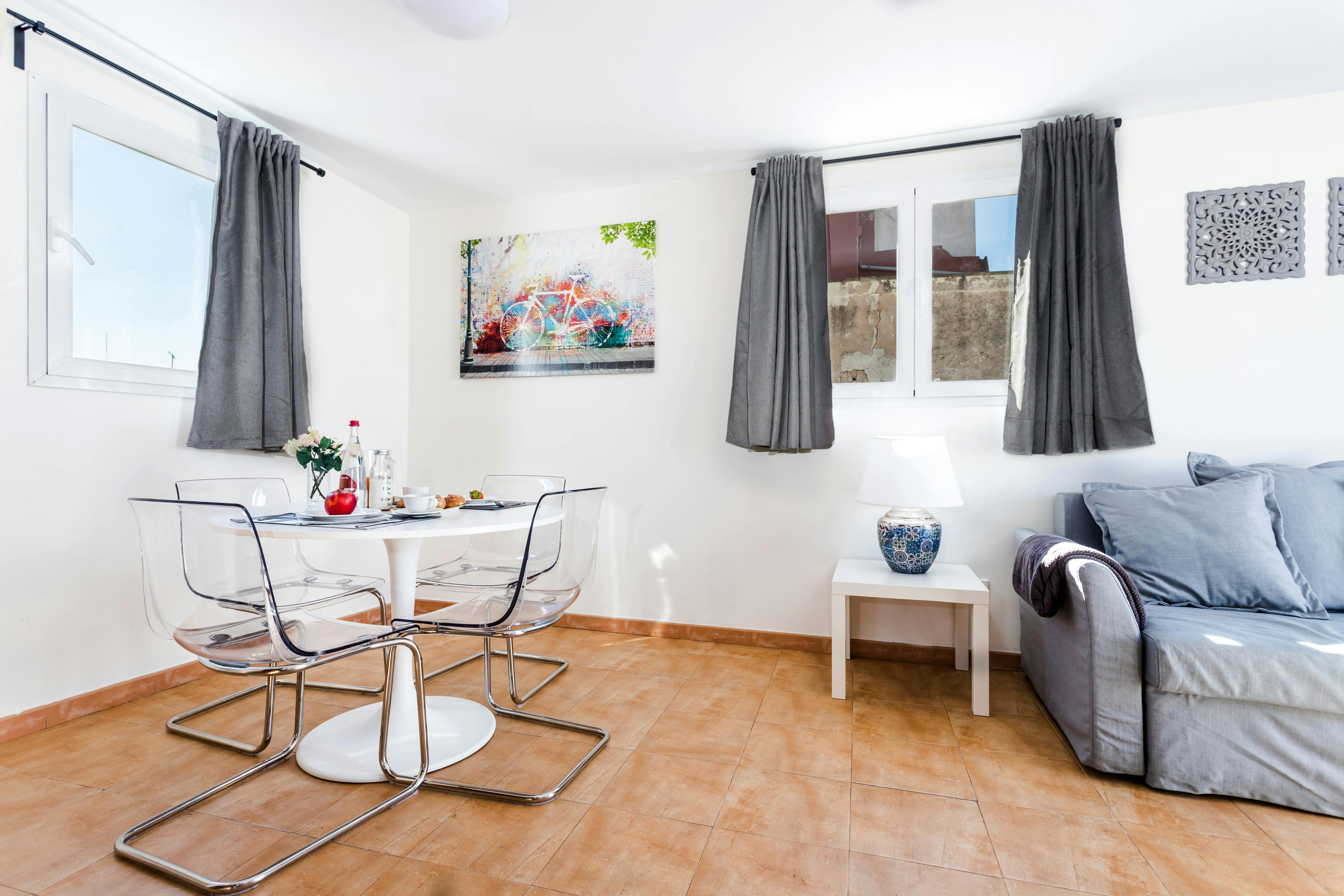 La zona de estar y comedor están integradas y amuebladas con un un sofá de 3 plazas, una mesa para 4 personas, televisor de 49 ” de pantalla plana y cadena musical.