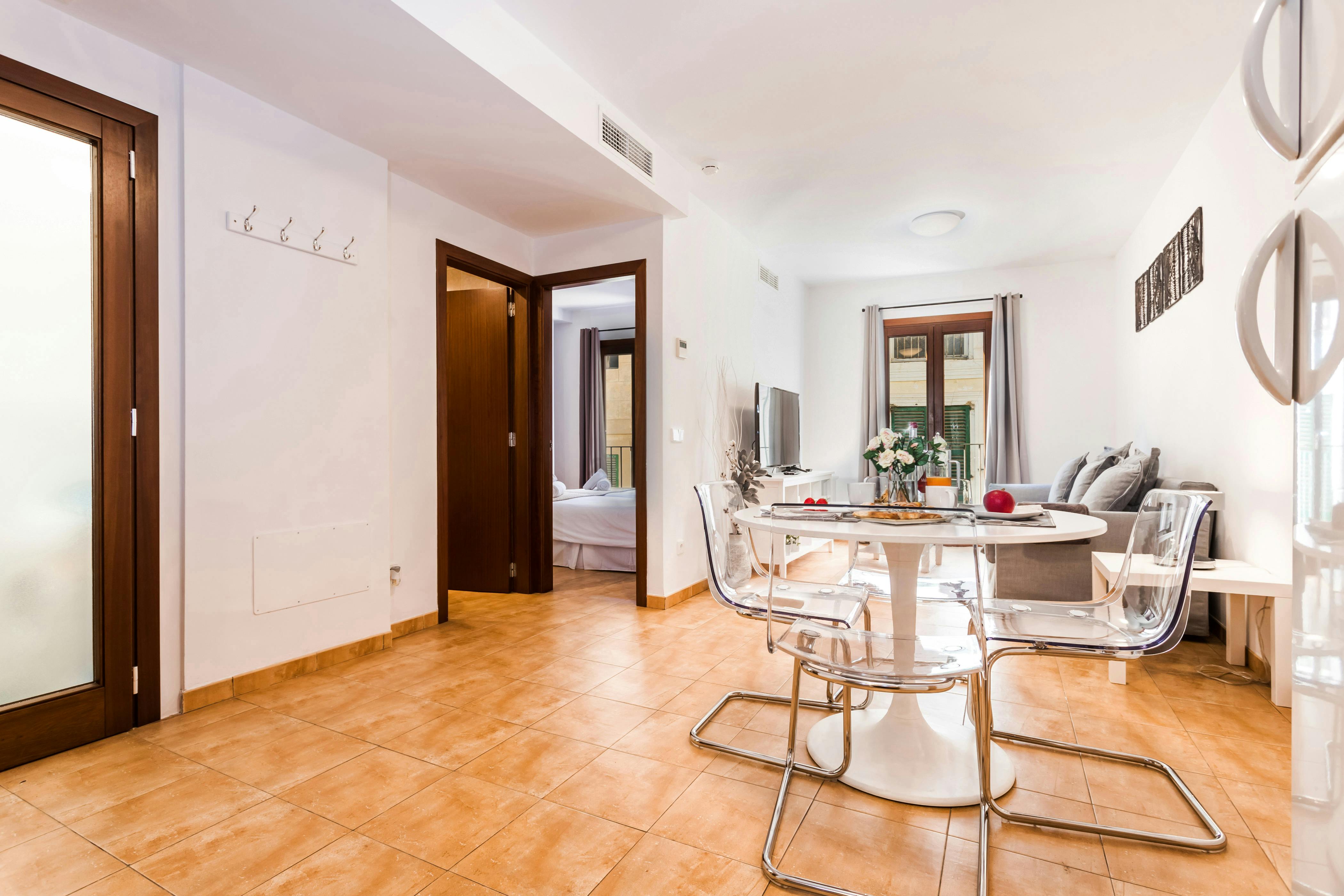 Apartamento de 55 m² con un dormitorio, un baño en suite y cocina americana en salón comedor.