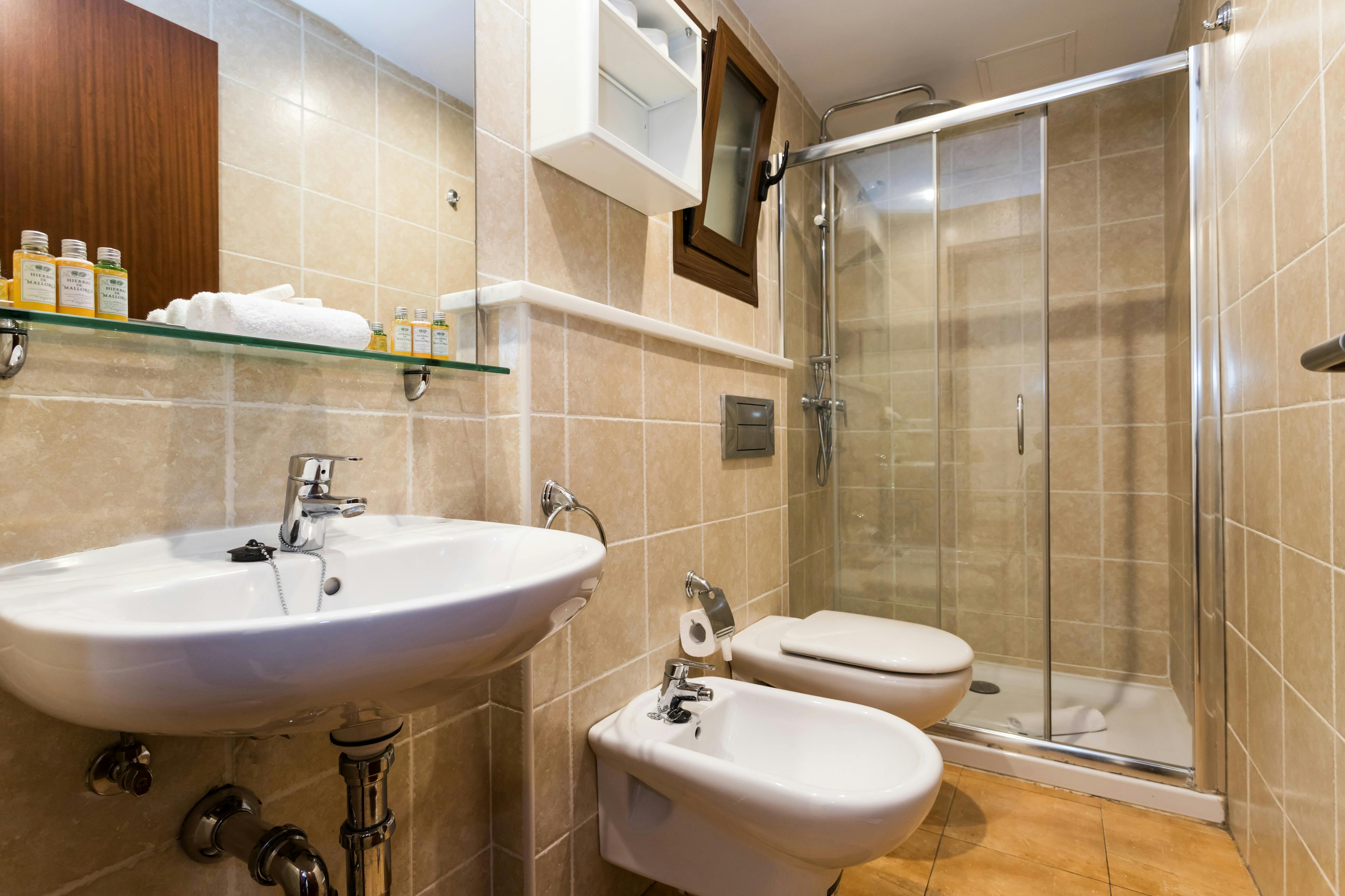 El baño en suite está equipado con lavamanos, water, y ducha. Dispone de amenities de aseo y toallas para todos los huéspedes.