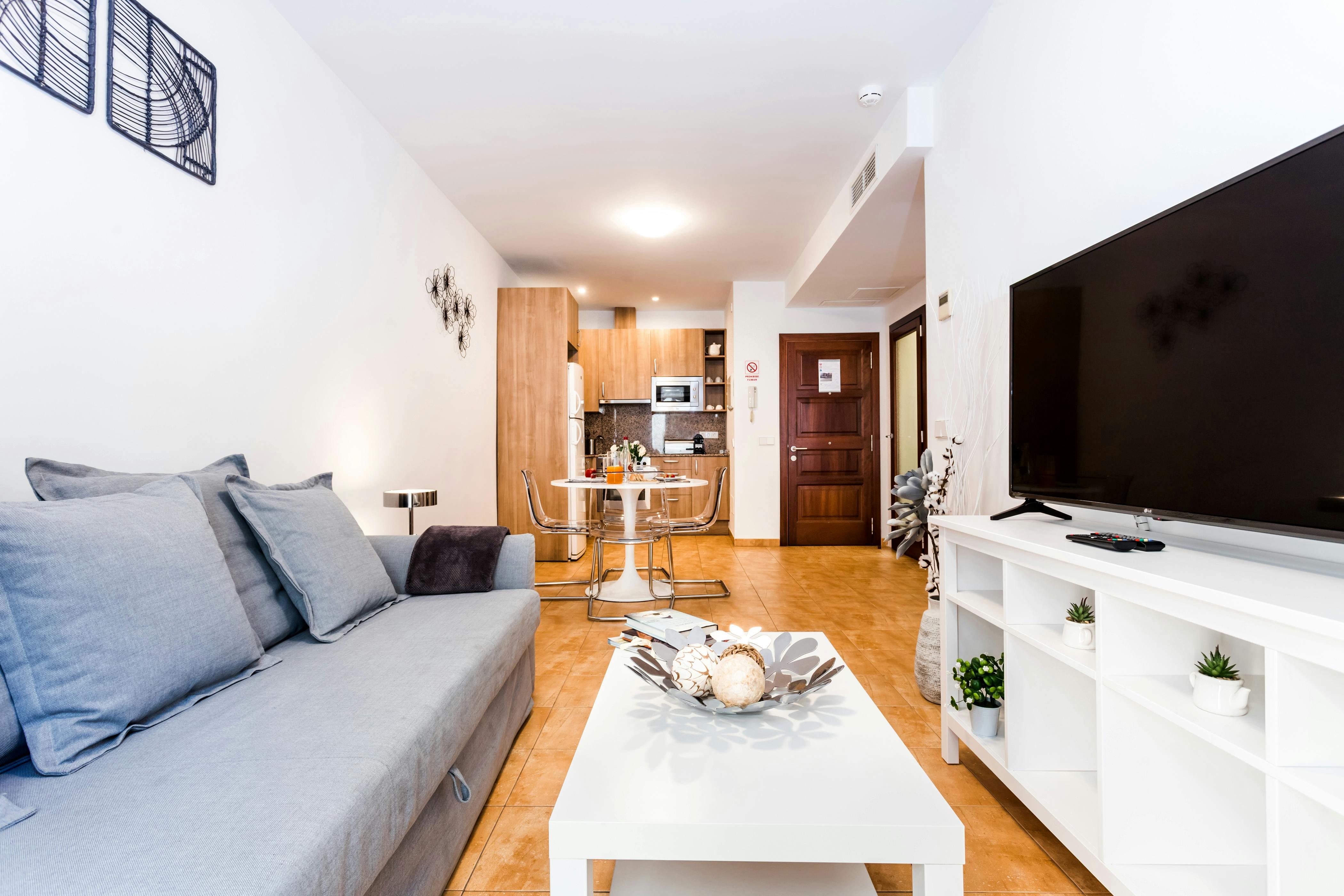 La zona de estar y comedor están integradas y amuebladas con un un sofá de 2 plazas, una mesa para 4 personas, televisor de 49 ” de pantalla plana y cadena musical.